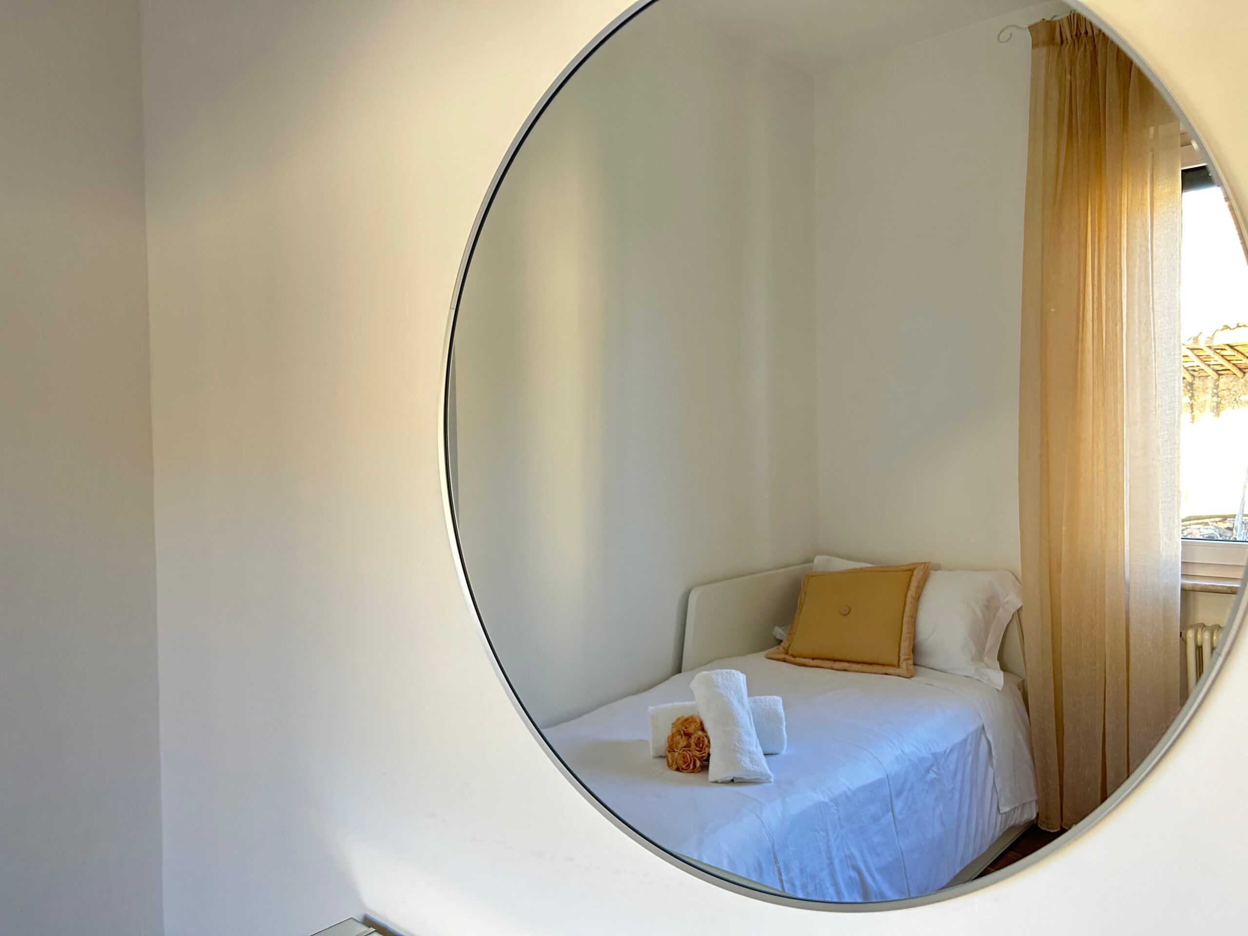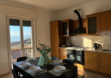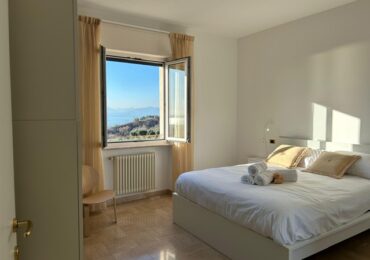 L’appartamento dispone di due camere da letto: una matrimoniale con vista e una singola, pensata per garantire maggiore privacy.