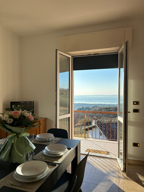 L’appartamento dispone inoltre di un balcone con vista, ideale per trascorrere momenti di relax all’aria aperta.